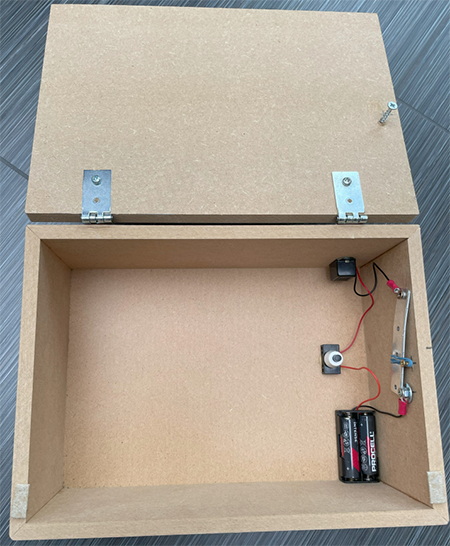 * de alarmkoffer mag je meenemen naar huis (waarde 15 euro) |